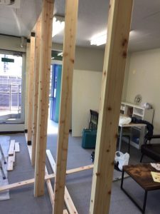 西船橋教室が開校されました。部屋を仕切るためにコーネル及びオフィアが明け方まで働いてくれました。ご苦労様です。 これで大人の比較的静かなレッスン と元気なお子さんのレッスンとが同時進行してもお互いのレッスンの音が気にならないと思います。